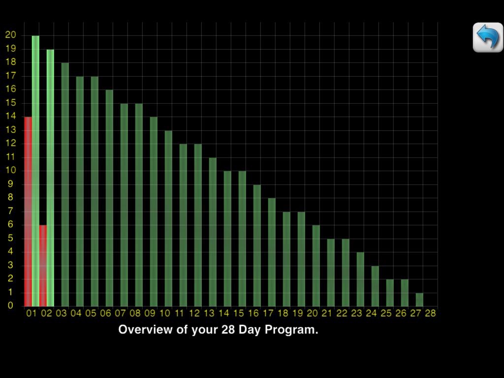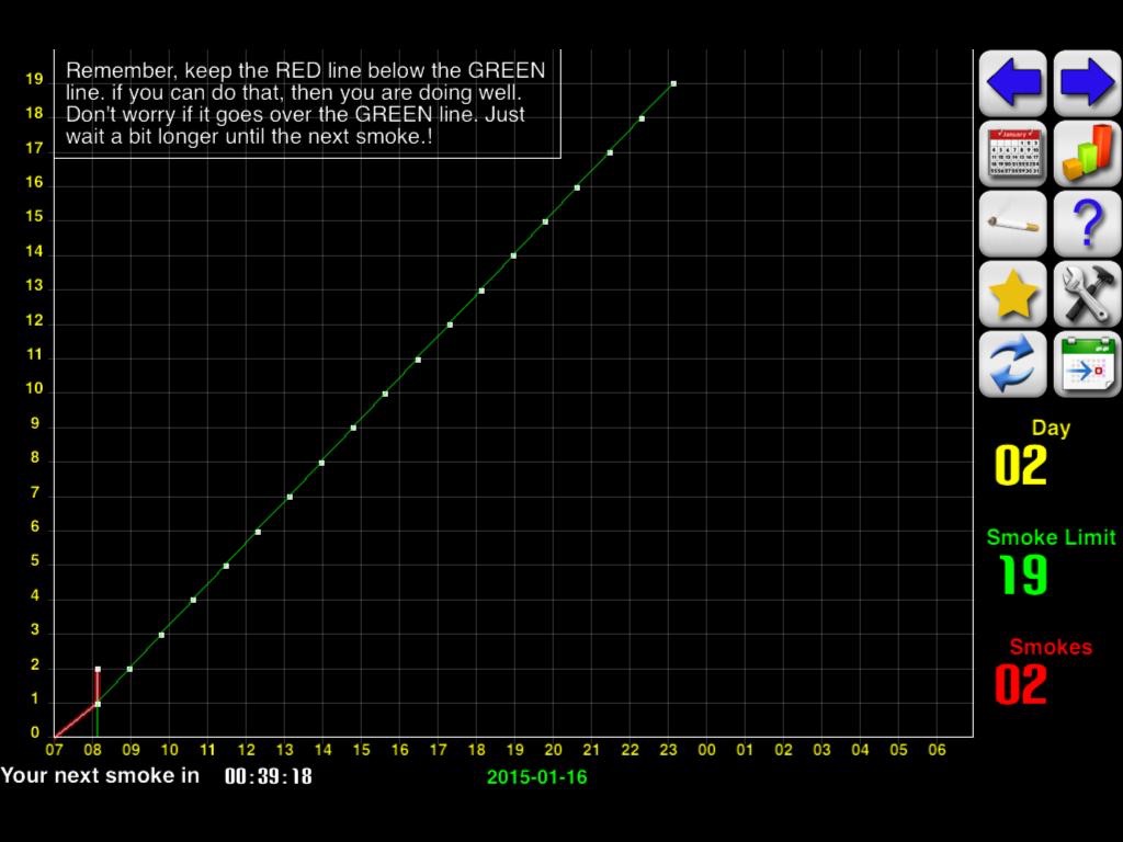 The application monitors your smoking habits, and shows you what you are smoking and how often. The program will help you to slowly reduce your smoking until you reach 0 a day.