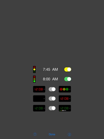 Stoplight Nanny is easy to use — ideal for use in a dark room when you’re tired. Set the alarms on one screen with just a few touches. Adjust the clock brightness quickly on the clock face. Tap alarm indicators to recall alarm times.