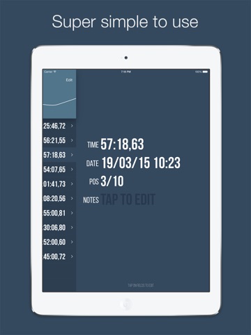 Track your times effortlessly with Stopwatch logbook. And analyse your records without having to crunch the numbers yourself.