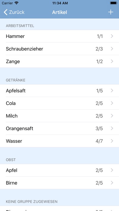 Grocery lists are also created in one second by listing all missing articles with the according amount.