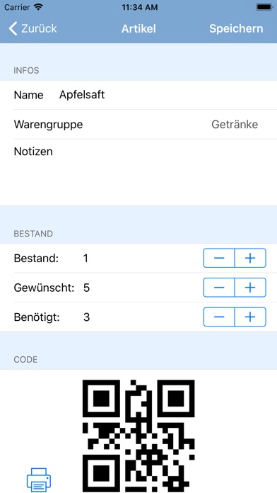 The QR-Labels for all the articles can be easily printed out of the app.