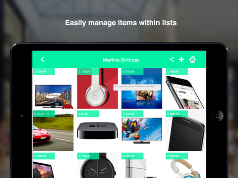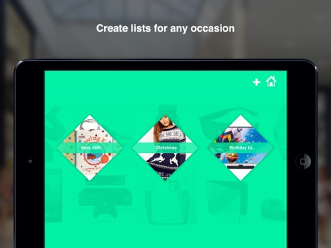 Create shopping lists for Christmas, birthdays, weddings and even treats for yourself.