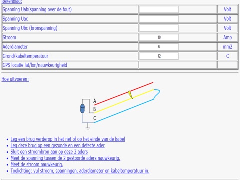 Rekentool voor kabelstoringen. Zoals de spanningsafval, directe- en lusmethode.
