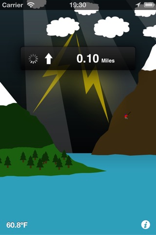 Nice little free app. Cute animations. Its very basic: touch the screen once to start the timer, it starts counting. Touch it again, it makes a little thunder sound and vibrates, tells you how many miles away the lightning was. some easy enhancements: report in both english and metric keep a history of the date/time and the distance recorded.