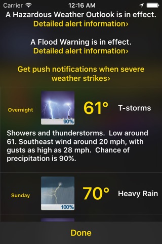 * Push notifications accompanied by audio alerts that will wake you up (for Tornado and Severe Thunderstorm Warnings^)