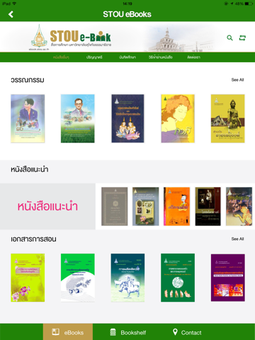 STOU eBooks ยินดีต้อนรับทุกท่านสู่โลกหนังสือออนไลน์ เป็นโครงการอนุรักษ์และเผยแพร่วรรณกรรมหายากที่มีคุณค่าในรูปแบบหนังสืออิเล็กทรอนิกส์บนอุปกรณ์พกพา โดยเป้าหมายการให้บริการของมหาวิทยาลัย เพื่อส่งเสริมศิลปะและวัฒนธรรม และให้บริการทางวิชาการแก่ประชาชน ชุมชน และองค์การทางการศึกษา อันจะนำไปสู่การขยายโอกาสทางการศึกษา เรียนรู้ตลอดชีวิต และไปสู่สังคมแห่งการเรียนรู้ สังคมฐานความรู้ ของหน่วยงานที่ดำเนินงานโครงการ สำนักพิมพ์ มหาวิทยาลัยสุโขทัยธรรมาธิราช โดยได้รับการสนับสนุนโครงการจาก งบประมาณงบอุดหนุนโครงการบริการวิชาการแก่สังคม ประจำปีงบประมาณ พ.ศ. 2555-2556