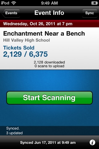 Scan your event tickets with the greatest of ease! Just point your iPhone or iPod Touch at the ticket barcode and immediately know if the ticket is valid. You can also look up tickets by name, confirmation code, or serial number. The app syncs your scans with our servers so you can have several scanners at different entrances and never worry about copied tickets! Wa-pow!