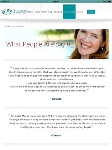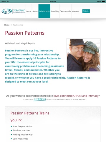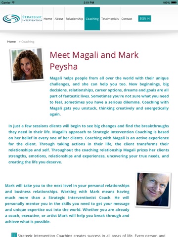 Stratagic Intervation Coaching is a way to create dramatic change in individuals, groups, couples, and teams.Stratagic Intervation is dedicated to extracting the most effective form of stratagic action and communication from the desciplines of Neurolinguistics, Human Needs Psychology, Stratagic Family Therapy, Negotiation & Diplomacy, Ericksonian Therapy, Organizational Psychology.