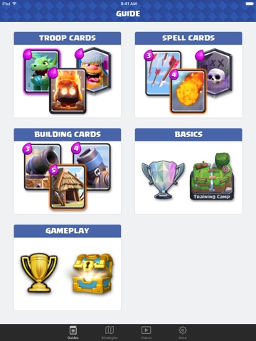 • Attack strategies videos explaining troops and decks.