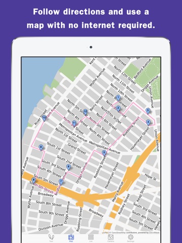 Follow directions for the walk and see locations on a map with no internet connection required.