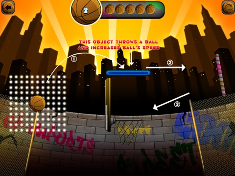 Be careful the basket-ball doesnt fall through the empty space or reaches out of bounds, this will count as a lost ball! It need to bounce every time on the bar before it goes inside the basket, now Its not so simple, right?