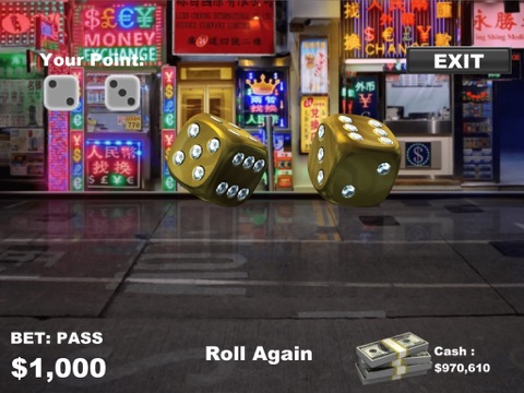 Street Dice ™ uses the same rules as street craps. Place PASS and DONT PASS bets and roll the realistic 3D dice to make your POINTS.