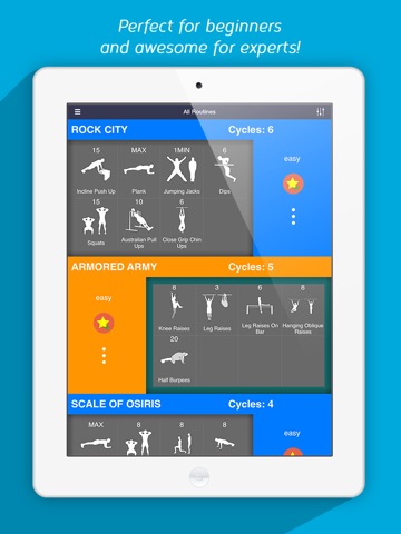 Its a great app, need to fix some bugs with your routine creation like the difficulty that always its stuck at easy and with the number of the exercise limits that you can put; need to have a option to delete your exercise and one to edit it Some recommendation that would be awesome its to explore the exercise with the help an de video function (that is awesome by the way) like a search bar to exercices example one that work legs and appears wall sit, squats; another thing would be great it is to be able to choose your exercise by clicking it and not by pressing the button to next, another thing would be good it to exercise image turn green conform you finish it, and the last one would be to turn the timer bigger. Thanks love u all its a app live savior