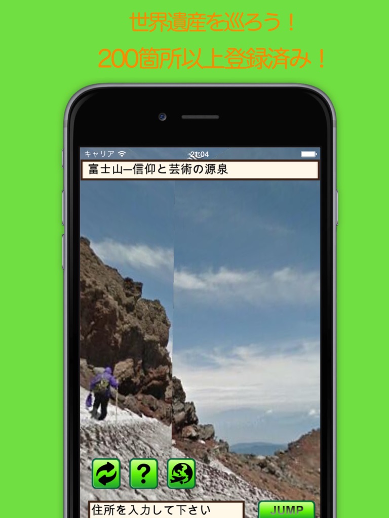 · Random tour button to try to jump to the world heritage! Registered world heritage is more than 200 points!