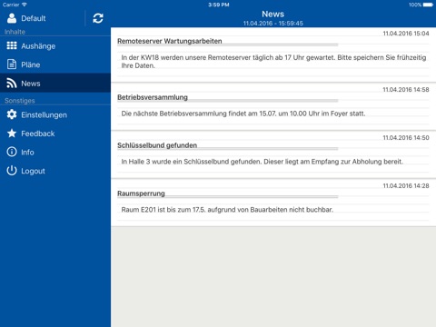 Die StrehleAPP dient der Mitarbeiterkommunikation innerhalb und außerhalb des Unternehmens. Relevante Informationen und Dokumente können zu jeder Zeit standortunabhängig abgerufen werden. Über das Online-Portal (www.DSBmobile.de) können die Mitarbeiter von jedem internetfähigen PC auf die App-Inhalte zugreifen. Dank der Verschlüsselung sind Ihre Daten immer bestens geschützt.