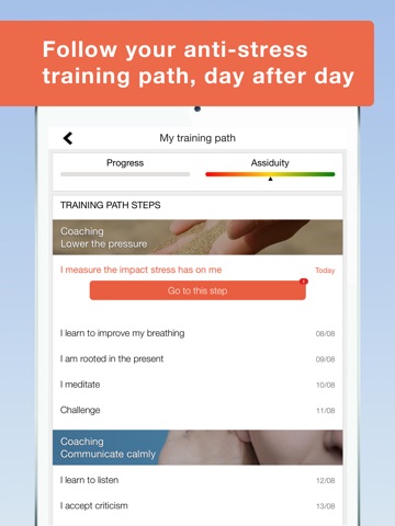 Neutralising stress is a process that contains several steps. That is why the StressLess Premium app consists of 4 coaching sessions to practise day after day, following a true training programme.