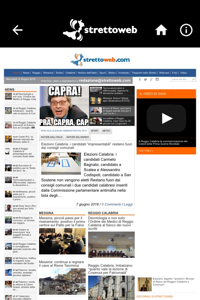 - La lettura di news e articoli relativi a cronaca, politica, sport e tutto ciò che avviene nell’area dello stretto, con particolare attenzione a quanto accade nelle città di Reggio Calabria e Messina con notizie sempre aggiornate.