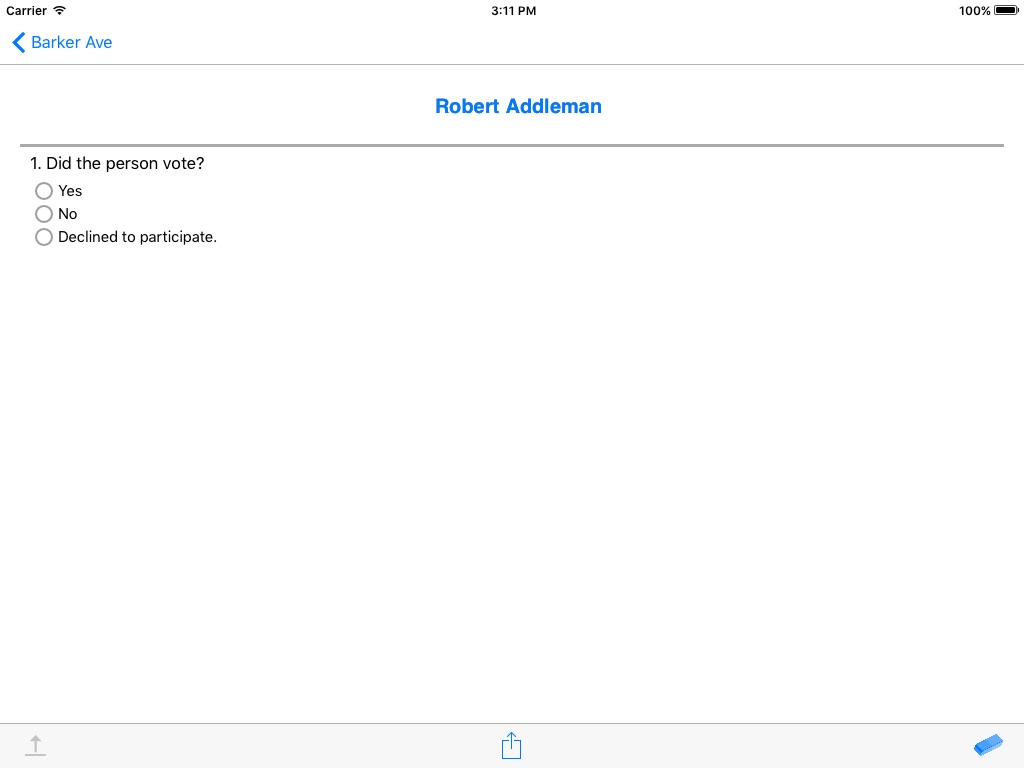 2. On election day your volunteer poll watchers at the precinct polling places open the Strike List GOTV app on their iOS mobile devices. Strike List GOTV contains the full voter file for the precinct. Each time a voter exits the polling station a poll watcher instantly looks up the voter in the app and checks off that they have voted.