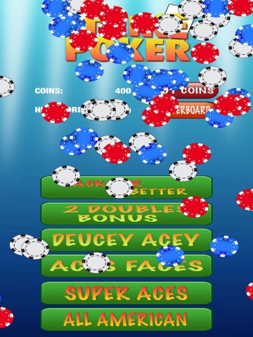 6 Video Poker games to choose from - Jacks or Better, Deuces Acey, Double Bonus, Jacks or Better, Super Aces, Double Double Bonus, All America, Aces And Faces, bonus.