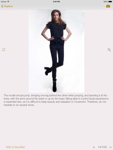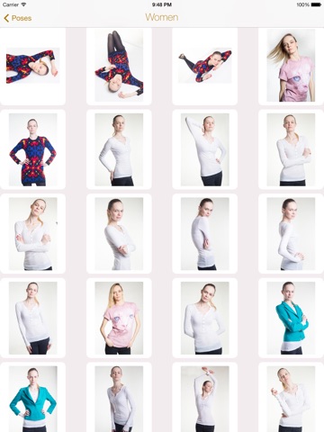 The photos do not show professionalism. The poses, the models and the clothing look very amateur. This app show some bad poses that should never be used in a photo shoot. Texte under the photos have been copy from an another app call model1001poses.