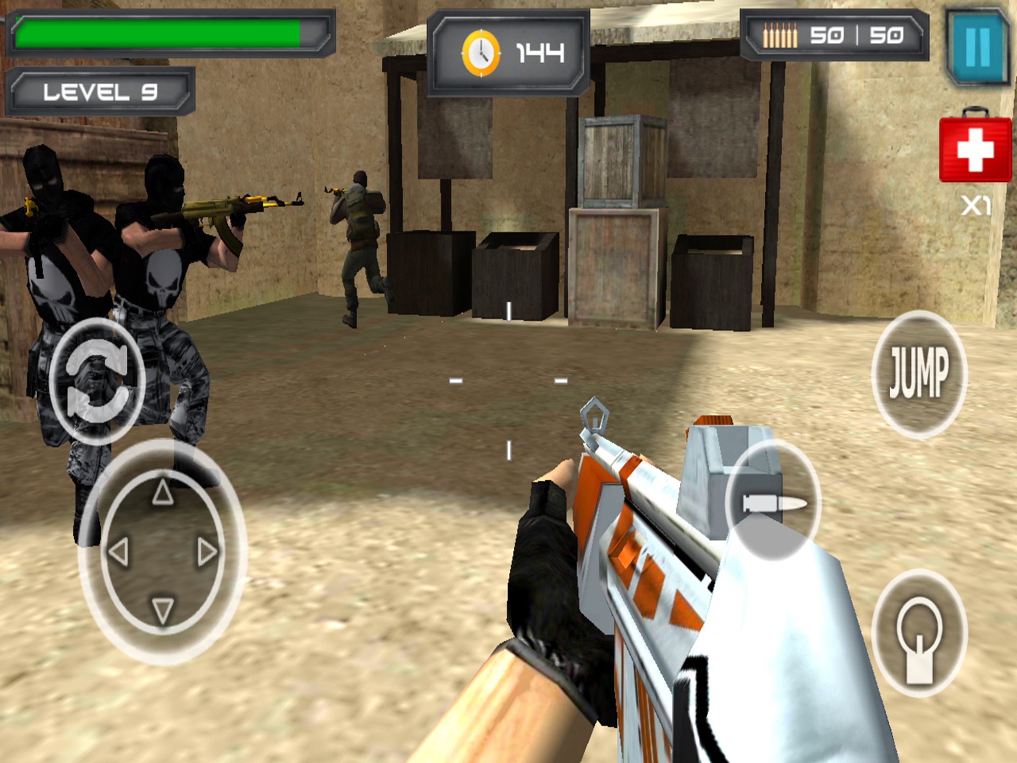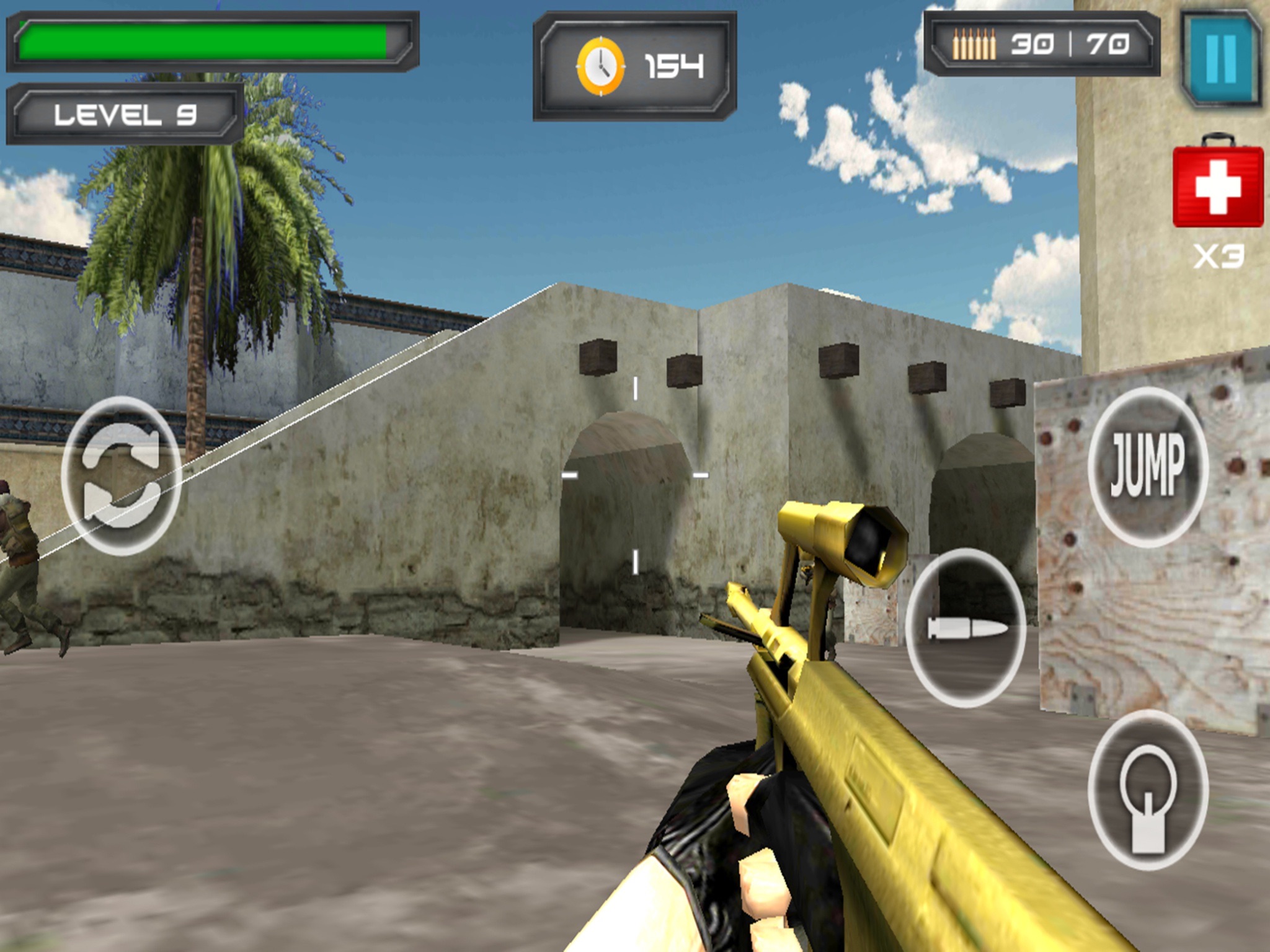 3.Realistic battle scenes(Ice Fortress,Military Base,Classic Dust2,Arms Depot,Construction Site).All the s nes are realistic style, simulate real-world terrain features, desert 2, military warehouses, snow scene intersection etc. allow you to experience an extraordinary journey killings.
