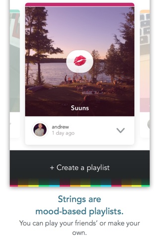 strings.fm is an app for expressing yourself with music. Just pick some emoji, swipe right on a few songs, and Aura (our mood-learning algorithm) finds you a playlist worth of songs that match how youre feeling. No tagging, categorizing, or searching involved - youre free to kick back and enjoy the moment.