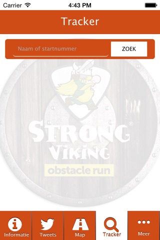 Ben je toeschouwer of wil je je vriend of vriendin thuis volgen: kies dan voor “overslaan”. De gebruiker kan maximaal 5 deelnemers volgen via de “tracker” tab. Tracker betekent dat een deelnemer gevolgd kan worden op basis van de exacte tussentijden berekend op basis van de RFID chip registraties. Verwijderen uit de tracker of nieuwe vrienden toevoegen kan continue. Je kan ook zichzelf toevoegen. De gebruiker ziet dan de exacte chipregistraties en eventueel tussentijden van zichzelf binnen enkele seconden na het passeren van het registratie punt. De uiteindelijke uitslag wordt ook hierin getoond.
