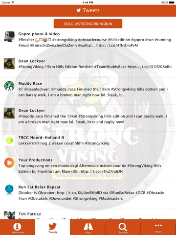 Ook vind je in de app de laatste updates via de “informatie” en de “Twitter” tab. De persoonlijke video’s en foto’s zijn tevens gekoppeld aan de app zodat je deze na afloop kan bekijken op de telefoon.