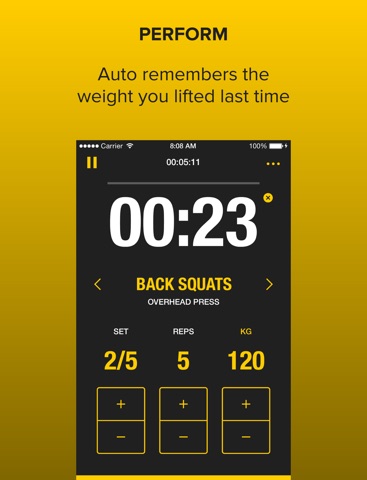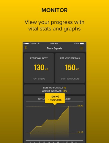 Effortlessly plan, perform and monitor. Structure your workouts and combine into periodised programs. See progress in cleanly designed graphs and stats (Strongr Pro).