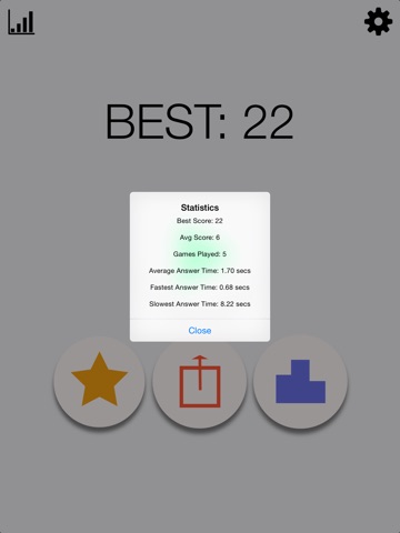 * Stats to track your fastest and slowest answer time, average score and number of games played!