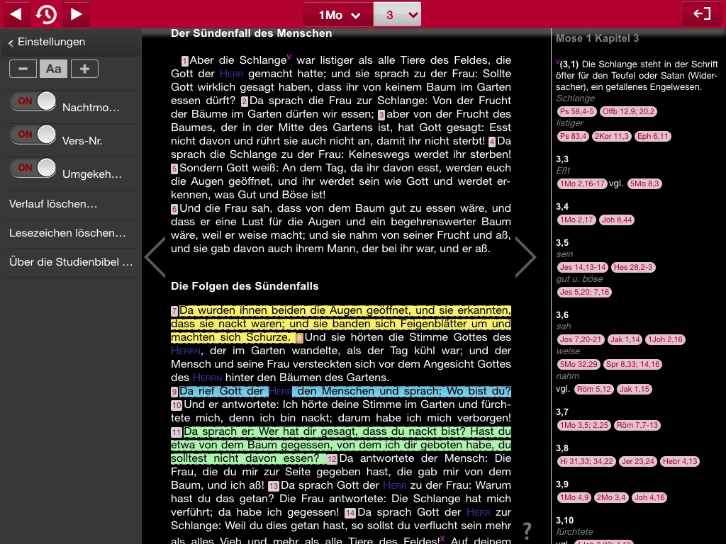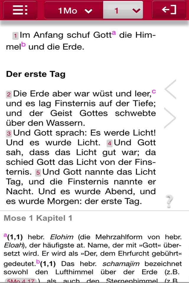 - die Bibel im Hoch- oder Querformat lesen und von Kapitel zu Kapitel zu navigieren