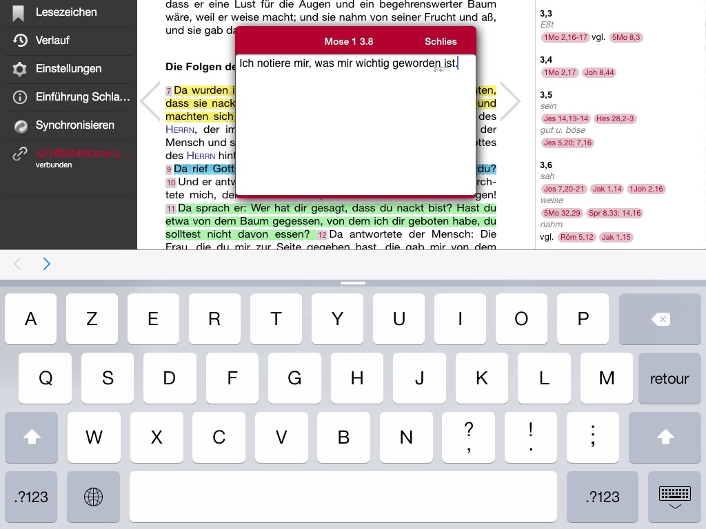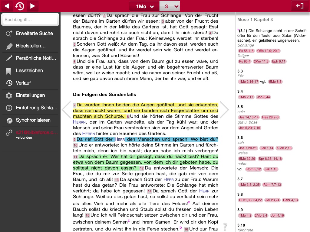 - die von Ihnen aufgerufenen Textstellen im „Verlauf“ wiederfinden (ideal beim Bibelstudium oder bei einer Predigt)
