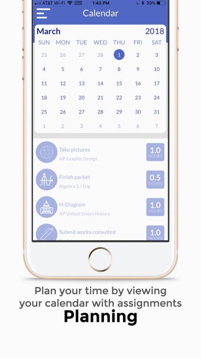 -> Easily see how many hours of homework you have that night