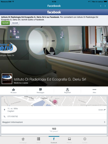Scarica subito la nuova App dello Studio Radiologico Deriu di Cagliari. Potrai scoprire tutti i nostri servizi e gli esami con le attrezzature più tecnologiche. Chiamaci e prenota direttamente la tua visita, consulta il nostro sito web e diventa fan della nostra pagina Facebook.