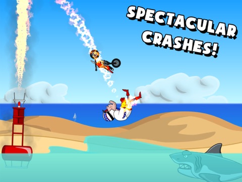 Rev up and start jumping cars, trucks and buses before progressing and performing even more daring jumps across canyons, city rooftops, shark infested waters and more! Skill and timing is of the essence as you manoeuvre through rings of fire, panes of glass, over helicopters and perform mid-air stunts such as the Coffin, Superman and the amazing Whirlwind before nailing that perfect landing to maximise your score!