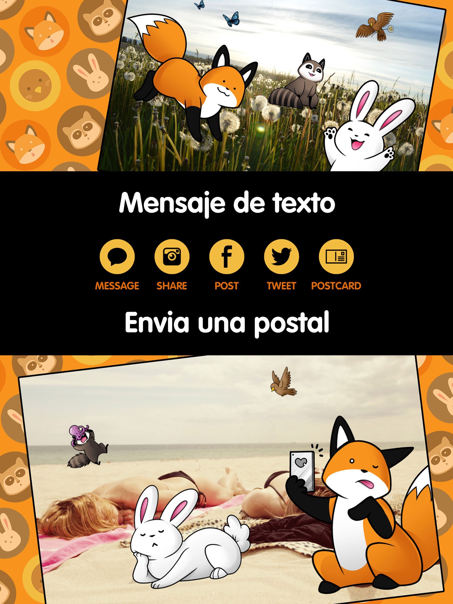 • Text your StupidFox photos to friends or share them on Instagram, Facebook or Twitter.