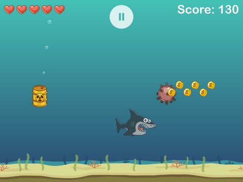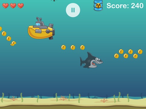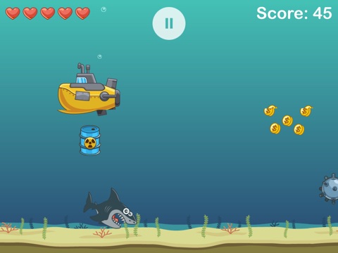 Choose a character, shark or submarine. Drag your finger around the screen and your character will follow. Collect coins to score, but avoid obstacles and enemies! Every so often you get the opportunity to gain back a life up to a maximum of 5.
