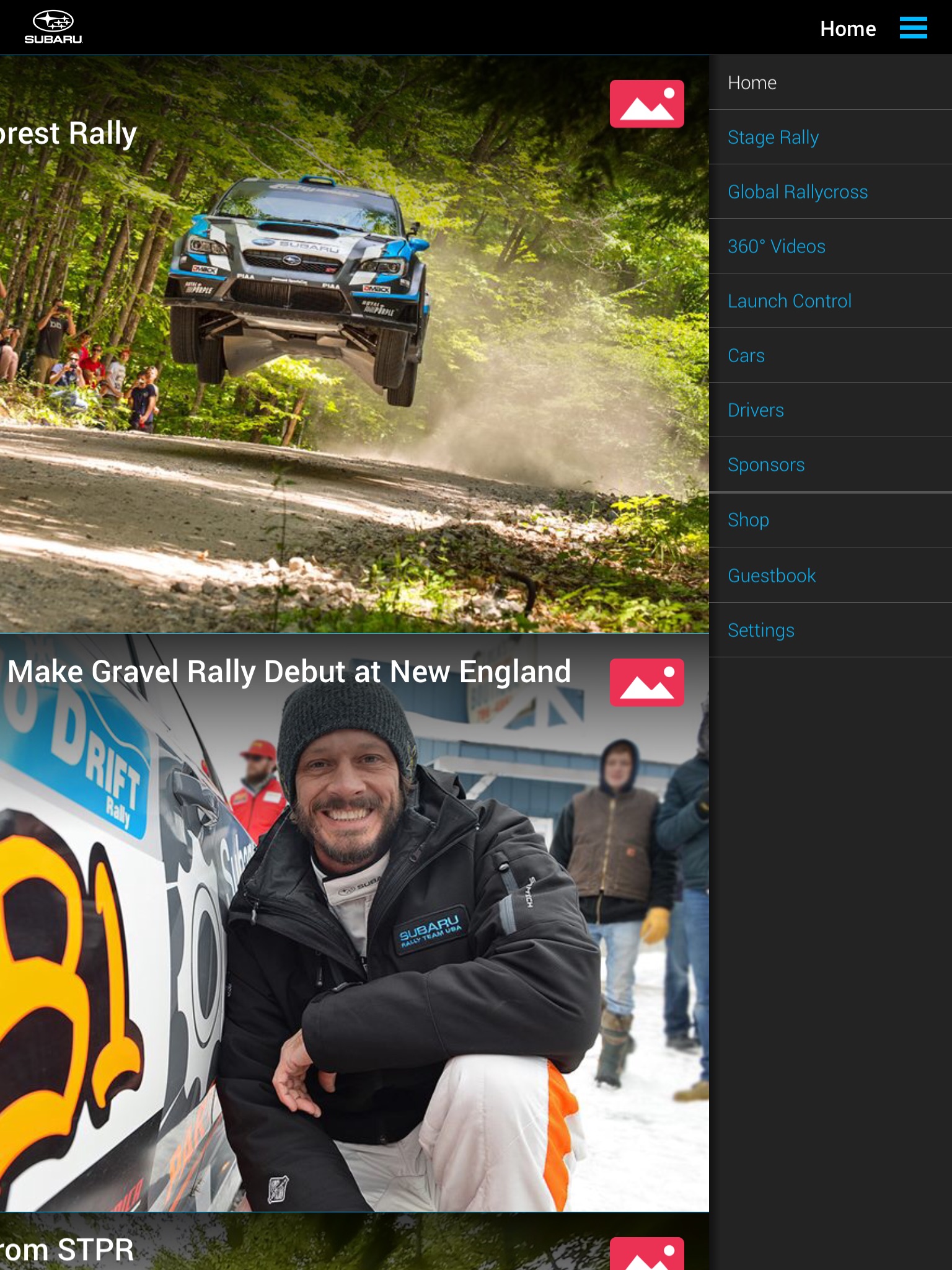 The Subaru Motorsports app brings the latest Subaru Rally Team USA news, media, and results from the Red Bull Global Rallycross and Rally America series championships directly to your fingertips. It can even send notifications when Subaru Rally Team USA is attending an event near you! Enjoy, and share, the continually growing library of award-winning 360º racing videos as well as the critically-acclaimed Launch Control video series and gorgeous team photography, all while staying up to date with your favorite Subaru Rally Team USA drivers and cars. Since 2014, Subaru has been leading the way in virtual reality by providing fans with race coverage in VR. If you own a mobile head-mounted display (e.g., Google Cardboard) simply launch the Subaru Motorsports app and play a 360º video, then cycle to the split-screen mode by clicking the viewing mode button in the lower right of the screen. Lastly insert your device into your head-mounted display and immerse yourself in the racing action from the safety of your own mobile device!