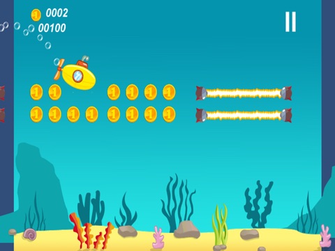 Submarine Dash!! is cool underwater game where you have to survive as long as possible while collecting nice and shiny treasure coins.