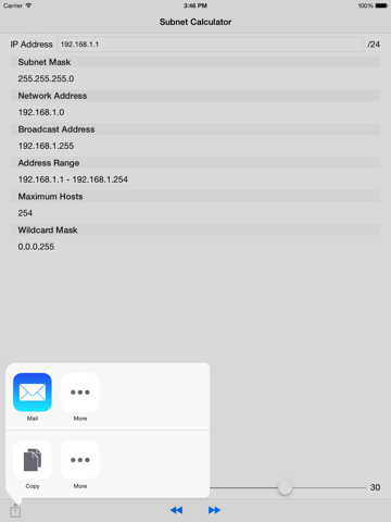 Subnet Calculator + is a simple to use subnet calculator. Just slide the network mask slider to start calculating.
