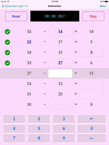 - "My Quiz" feature with a user-definable operand. The user can define a specific operand to focus on. E.g. Subtraction of 4.