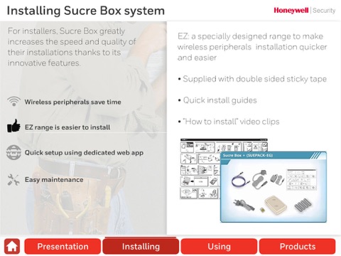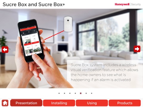 Sucre Box is a residential wireless security system from Honeywell. It offers a complete self-monitoring and remote service solution, and can be placed anywhere in the home. When an alarm is triggered, whether by a motion detector, smoke detector, or carbon monoxide alarm, the homeowner is alerted by email or text message – providing peace of mind that their home is secure, wherever they are in the world. The intuitive Total Connect Comfort International mobile App allows homeowners to control their Sucre Box security system remotely, arm or disarm the system, and verify an alert received through Honeywell Cloud Services. For example, if a motion detector with built-in camera is triggered, the Sucre Box ensures that images are recorded, transferred, and stored securely on the Honeywell Cloud. Homeowners can then access their images on smartphone or tablet via the mobile app, wherever they are, and verify if the alert was triggered by mistake. The homeowner can also request further live images if needed, for additional peace of mind.