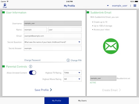 · Up to 10 accounts can be created so everyone in your family can enjoy Suddenlink2GO. Parental controls can be managed for each user to make sure only the content you want each user to view is available.