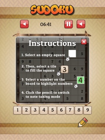 Sudoku is a brain challenging number game, played on a 9x9 sudoku board. The sudoku board is broken down into nine 3x3 squares. The object of the sudoku game is simple. Every row, column, and 3x3 box in the sudoku board must contain the digits 1 through 9 only once! As the difficulty progresses, the sudoku game becomes harder, and youll have to employ more advanced and strategic logic to solve the puzzles.