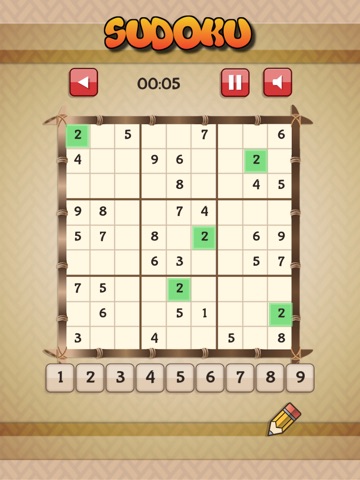 To play Sudoku, employ the basic object of the game by selecting it from the numbers on the side of the sudoku board. If the number is correct, the sudoku tile will slide into its correct slot. If not, the number will return to the outside and time will be added to your overall sudoku game time. To highlight numbers, click a number that has aready been placed inside the sudoku puzzle. As the game progesses, you may want to use notes. Click the pencil in the right bottom corner to turn the numbers into notes. Just click it again to return to puzzle number form.