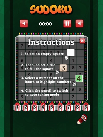 To play Sudoku, employ the basic object of the game by selecting it from the numbers on the side of the sudoku board. If the number is correct, the sudoku tile will slide into its correct slot. If not, the number will return to the outside and time will be added to your overall sudoku game time. To highlight numbers, click a number that has aready been placed inside the sudoku puzzle. As the game progesses, you may want to use notes. Click the pencil in the right bottom corner to turn the numbers into notes. Just click it again to return to puzzle number form.