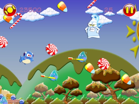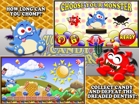 Join the sugar monsters on a wild ride in their candy world as they avoid the "evil" toothpaste and toothbrush while collecting yummy candy along the way!