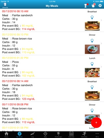 - GeoTracking Meals lets you review your average Blood Glucose levels from your favorite café’s and restaurants.
