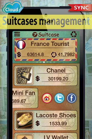 Drag the screen downward to add a new suitcase and give it a name. Then, choose the country where you are traveling to and set the exchange rate (or set by automatically). After these settings, you can simply record the price of your purchases in foreign currency. Suitcase S will compute the total price in domestic currency.