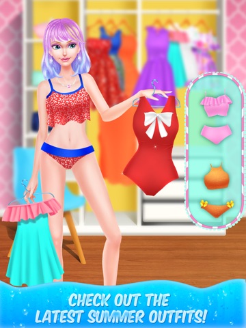 Pick an outfit to finish the look. Cycle through bathing suits, cover ups and summer dresses to match her new hairstyle. After you finish the dress up level, it’s time to hit the beach and show off your new look! Go get ‘em, sunshine superstar!
